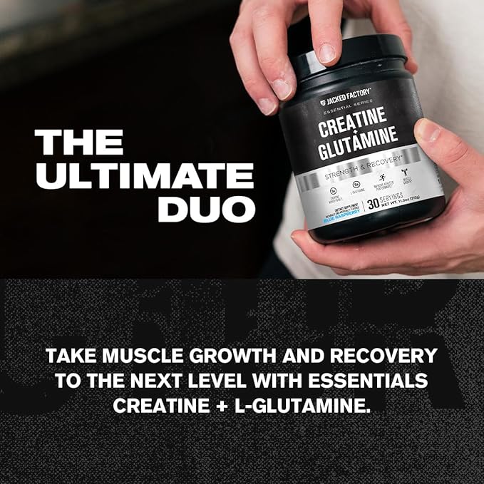 - Synergistic Muscle Support: Maximize your workout results with the dynamic duo of Creatine and Glutamine. Creatine Monohydrate & L-Glutamine's synergistic benefits support muscle recovery and a reduction in muscular fatigue, ultimately enhancing strength gains and promoting lean muscle mass.