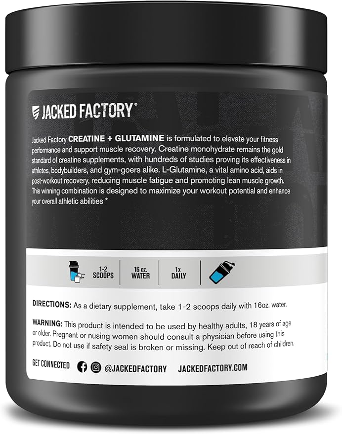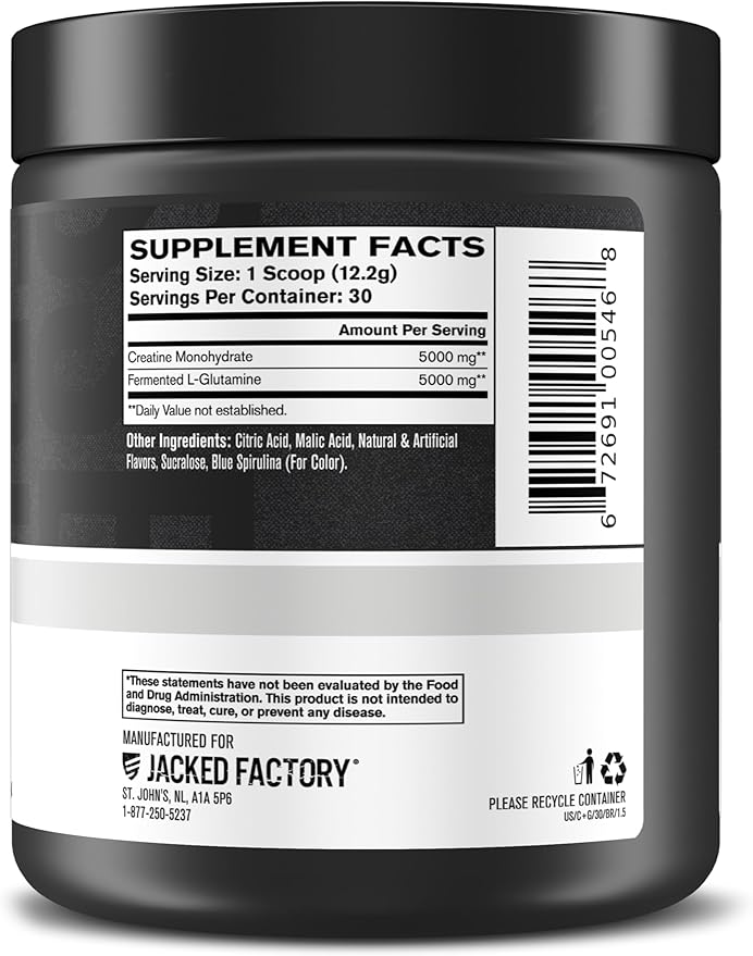 Jacked Factory Creatine + Glutamine - Creatine Supplement with L-Glutamine for Muscle Recovery, Muscle Growth, Increased Strength, Enhanced Energy Output, and Gut Health - 30 Servings, Blue Raspberry
