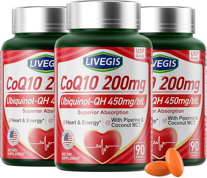 CoQ10 200mg Softgels, Ultra CoQ10 Ubiquinone 200mg with Coconut MCT Oil, 5X Superior Absorption, Coenzyme Q10 Ubiquinol and Supplements - 90 Counts * 3 Packs