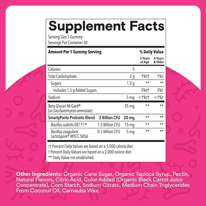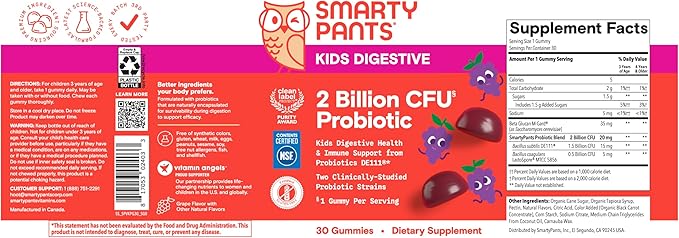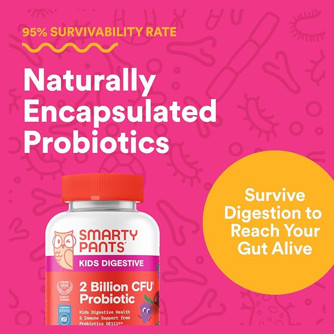 - SCIENCE-BACKED PROBIOTIC GUMMY SUPPLEMENT FOR KIDS: SmartyPants Kids 2 Billion CFU Probiotic is a specifically-formulated multi-strain probiotic supplement with clinically-studied DE111 to support a balanced gut microbiome, immune system, and digestive health* and with LactoSpore in a delicious gummy serving.