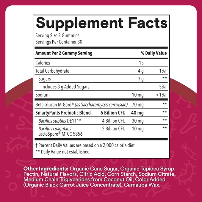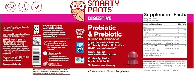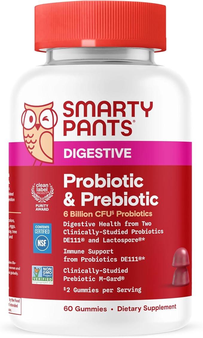 - SCIENCE-BACKED PROBIOTIC & PREBIOTIC GUMMY SUPPLEMENT FOR ADULTS: SmartyPants Probiotic & Prebiotic is a multi-strain probiotic and prebiotic supplement with clinically-studied DE111 to support a balanced gut microbiome, immune system, clinically-studied LactoSpore for digestive health, as well as clinically-studied prebiotic M-Gard.*