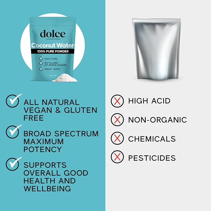 Dolce Superfoods Coconut Water Powder, Natural Electrolyte Powder for Daily Hydration & Wellness, Powdered Coconut Water with Potassium, Sodium, & Magnesium, 8oz