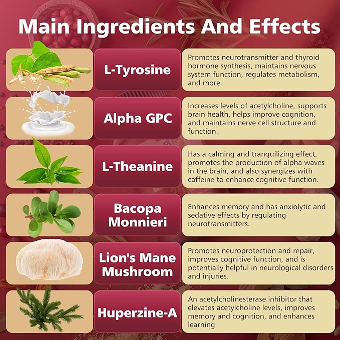 - Memory and Focus Enhancement with Trusted Nootropics: Our formula combines proven ingredients like Alpha GPC, Huperzine-A, and L-Tyrosine to boost brain function, mental speed, and clarity. It’s tailored to support memory supplements for adults facing everyday challenges.