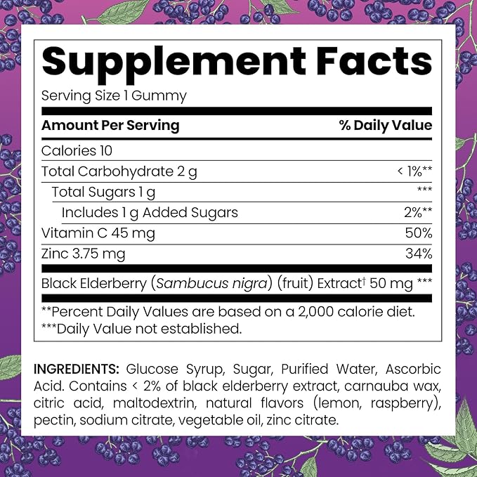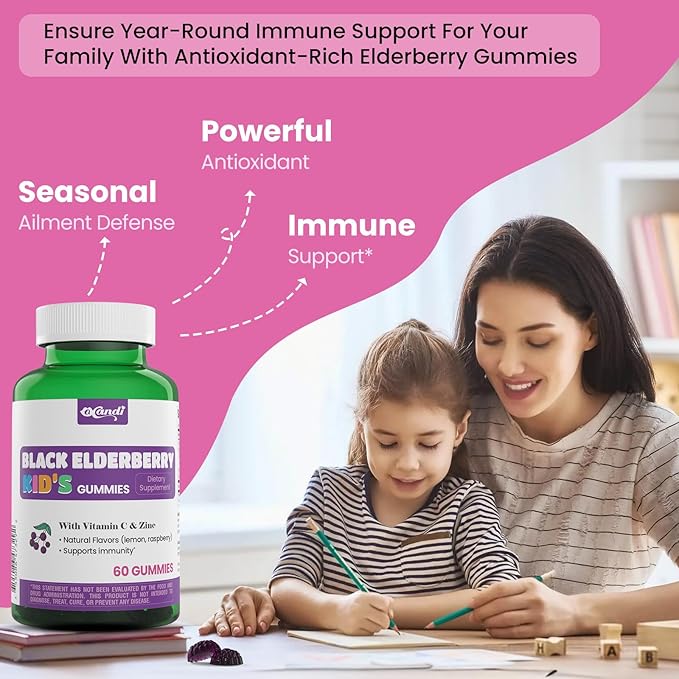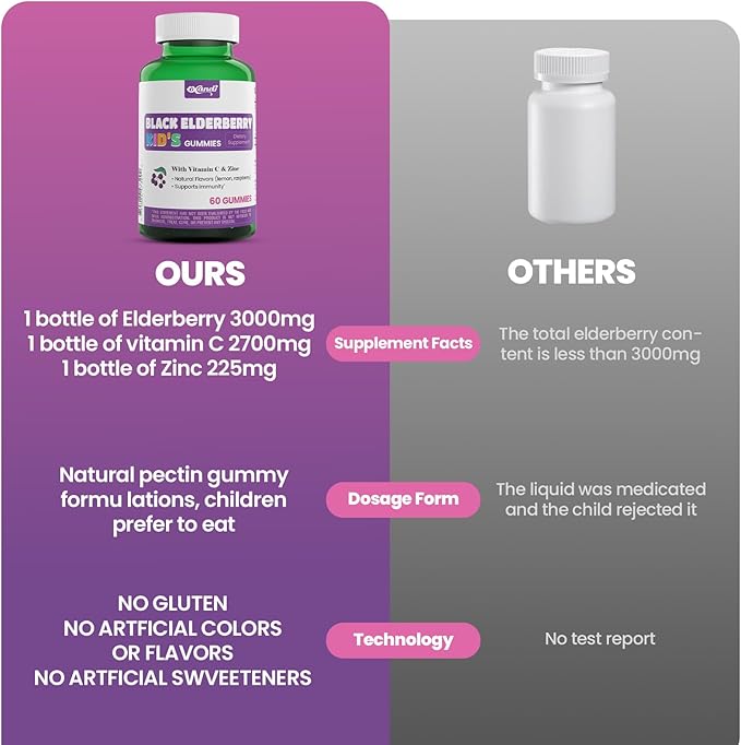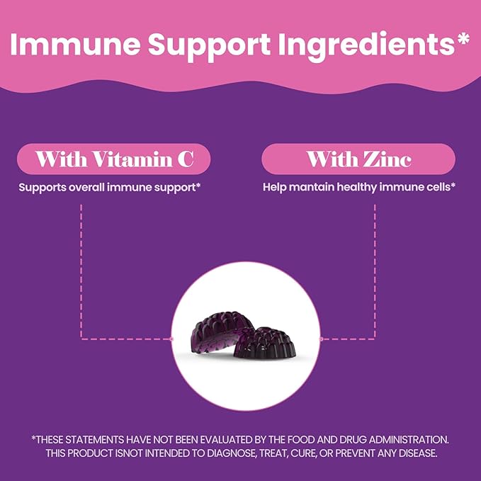 - 🍇 Immune Support Booster 3 in 1* — Elderberries have been used for centuries for traditional immune support.* Our specially formulated elderberry gummies for kids with Vitamin C and Zinc deliver the perfect combination to help support your child's immune system and Antioxidant*.
