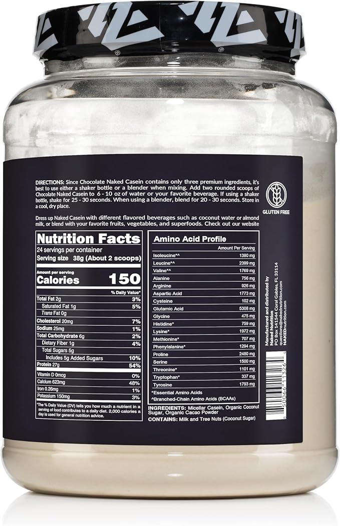 NAKED Casein - 2Lb Micellar Chocolate Casein Protein - Bulk, GMO-Free, Gluten Free, Soy Free, Preservative Free - Stimulate Muscle Growth - Enhance Recovery - 24 Servings