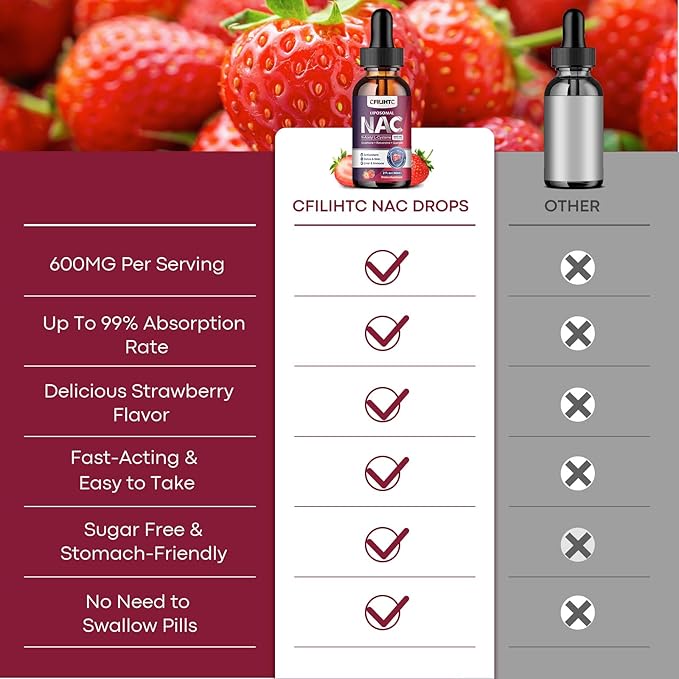 - Clean, Natural & Delicious Strawberry Flavor: Enjoy the delightful, fresh strawberry flavor of our NAC liquid drops, made with clean, natural ingredients. Perfect for both kids and adults, this enjoyable taste ensures you get your daily dose of wellness without any unpleasant aftertaste or artificial additives.*