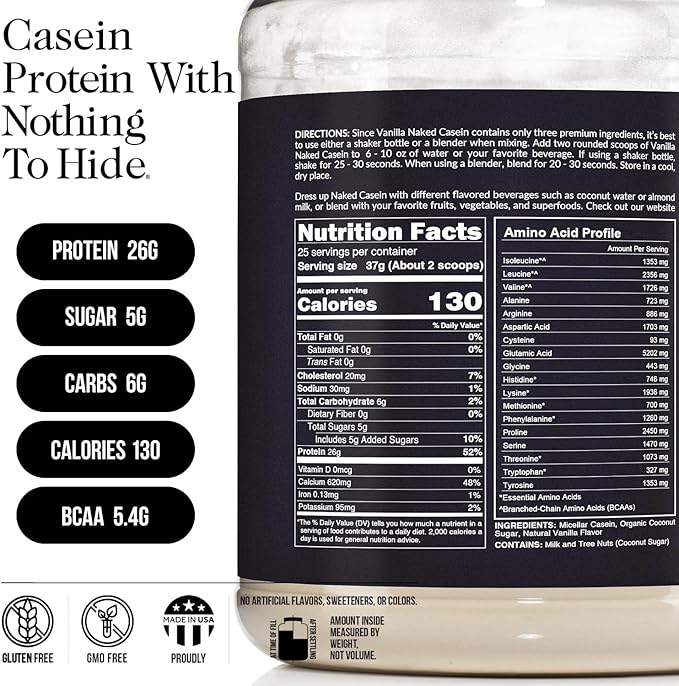NAKED Casein - 2Lb Micellar Vanilla Casein Protein - Bulk, GMO-Free, Gluten Free, Soy Free, Preservative Free - Stimulate Muscle Growth - Enhance Recovery - 15 Servings