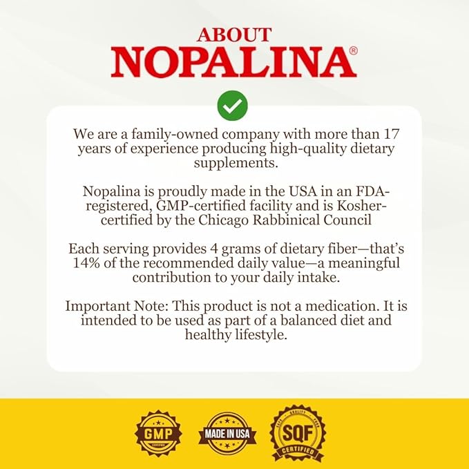 - Nopalina is made in the USA in an FDA-registered facility. It is GMP-certified, Kosher, and crafted with quality ingredients to meet high safety standards.