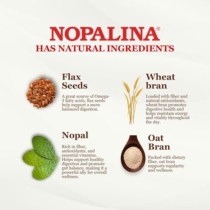 - Made with 100% natural ingredients, including flaxseed, psyllium husk, and edible cactus (nopal).