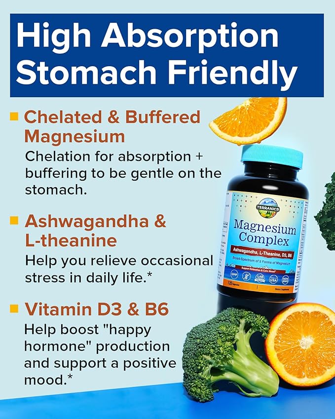 - 5 Forms of Magnesium: Why settle for just one type of magnesium? Terranics Magnesium Complex features the best 5 forms of magnesium for broad spectrum health benefits - magnesium glycinate for restful sleep, magnesium malate for energy boost, magnesium taurate for heart health, magnesium citrate & magnesium oxide for regular bowel movements.*