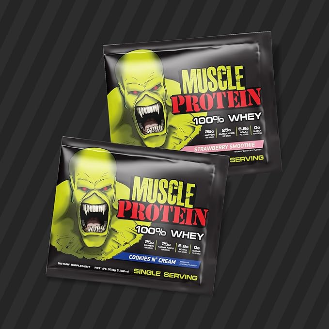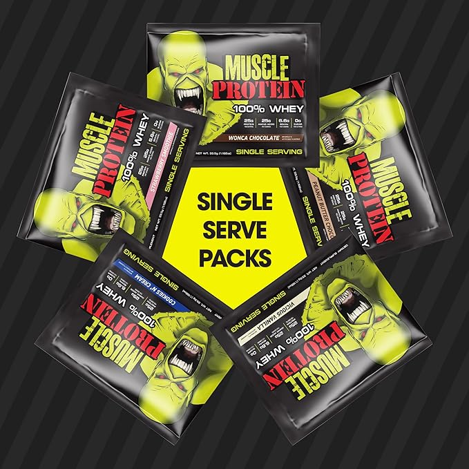 Whey Protein Powder Travel Single Serving Packs – Five Delicious Flavors, Cold Filtered for Maximum Absorption, 25g Protein, 6.6g BCAAs/Serving,0g Sugar-Perfect for Muscle Building & Recovery