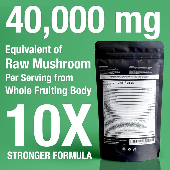 - ✅ MAX POTENCY, 40,000 mg PER SERVING – MOM Nutrix delivers 40,000 mg equivalent of raw mushroom per serving from 2,000mg 20:1 mushroom extract. Organic Black Pepper extract ensures maximum absorption.