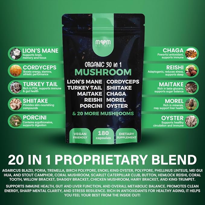 - ✅ 180 CAPSULES, SATISFACTION PROMISE – MOM Nutrix mushroom pills are made in a GMP certified facility and each batch is a third party lab tested for potency and purity. Enjoy a full 2-month supply. Your satisfaction is our promise!