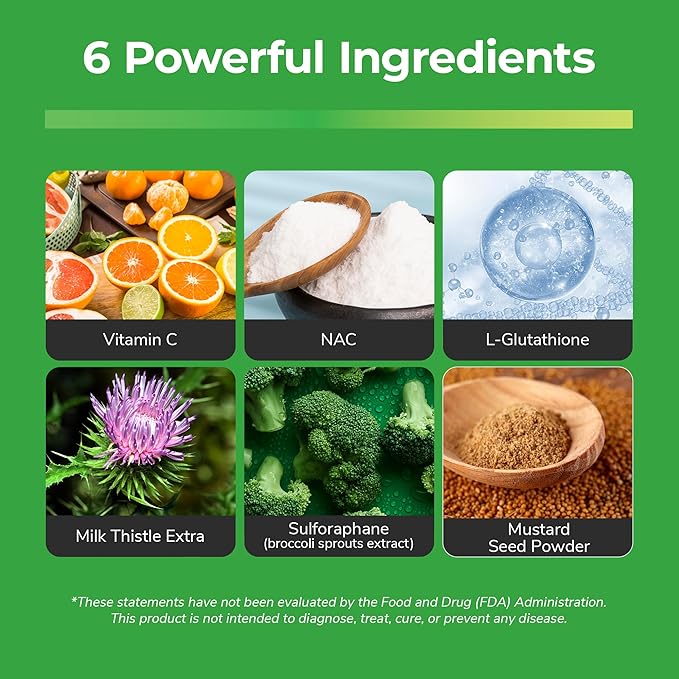 - Revolutionary Liver Detox Supplements: Sulforaphane, mustard seed extract, vitamin C, l-glutathione, NAC, and milk thistle promote 3x more detoxifying "phase II" enzymes in your liver. Addressing damaging buildup at the source helps keep your body burning stubborn belly excess.