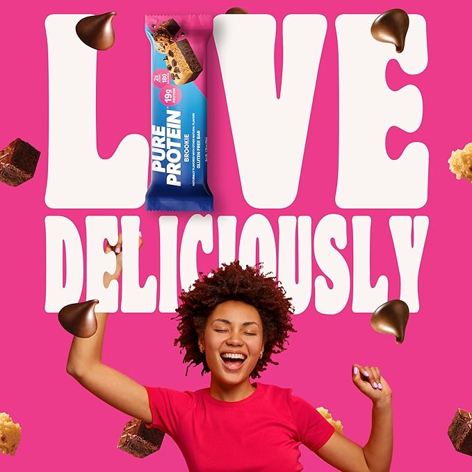 Pure Protein Bars, High Protein, Nutritious Snacks to Support Energy, Low Sugar, Gluten Free, Brookie, 1.76oz, 12 Count (Packaging May Vary)