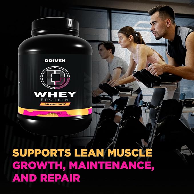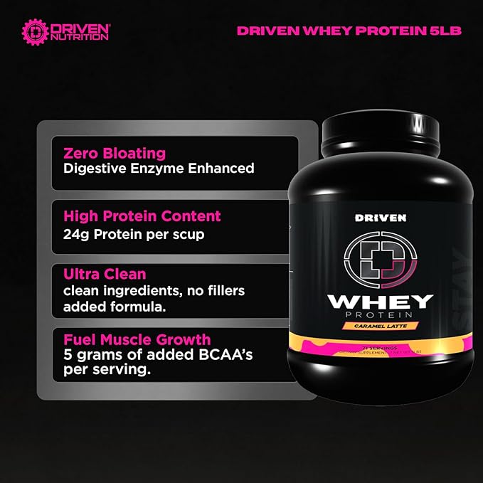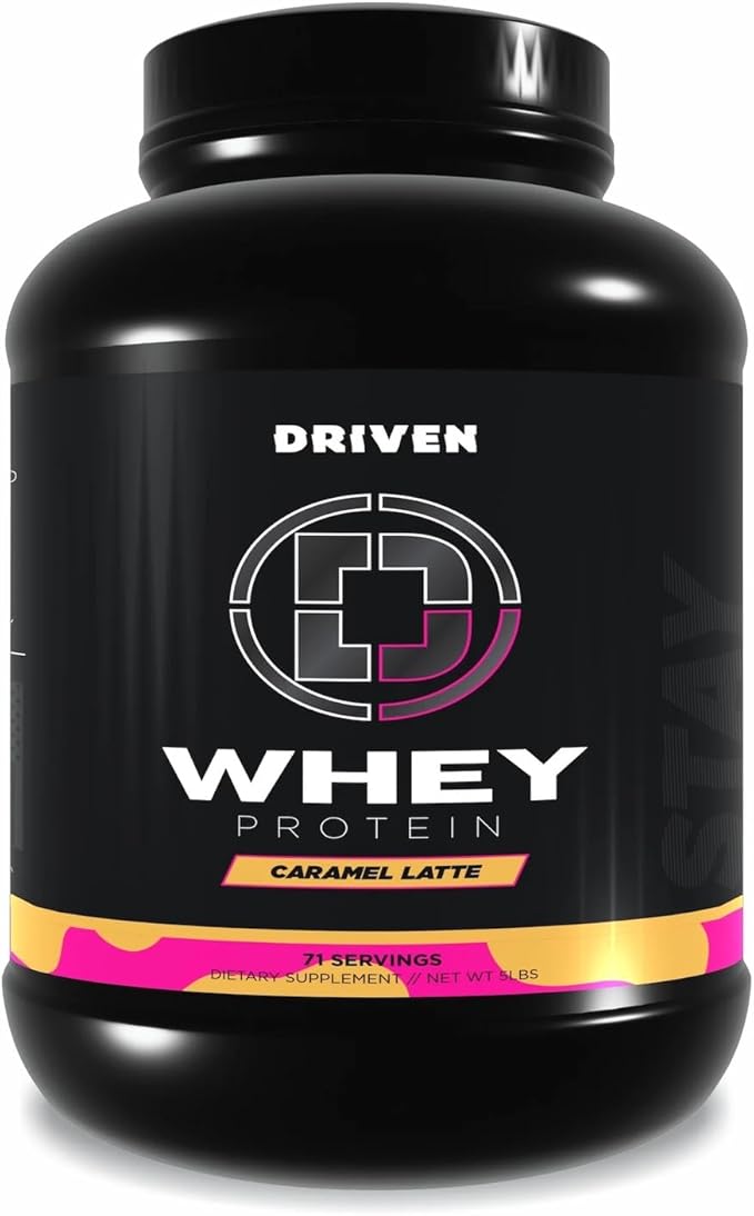 Driven WHEY- Whey Protein Powder: Delicious, Clean Protein Shake- Improve Muscle Recovery with 23 Grams of Protein with Added BCAA and Digestive Enzymes (5lb, Caramel Latte)