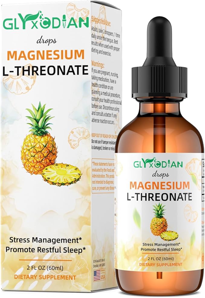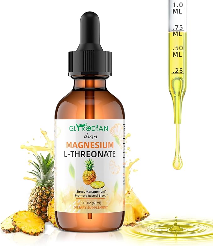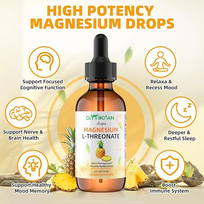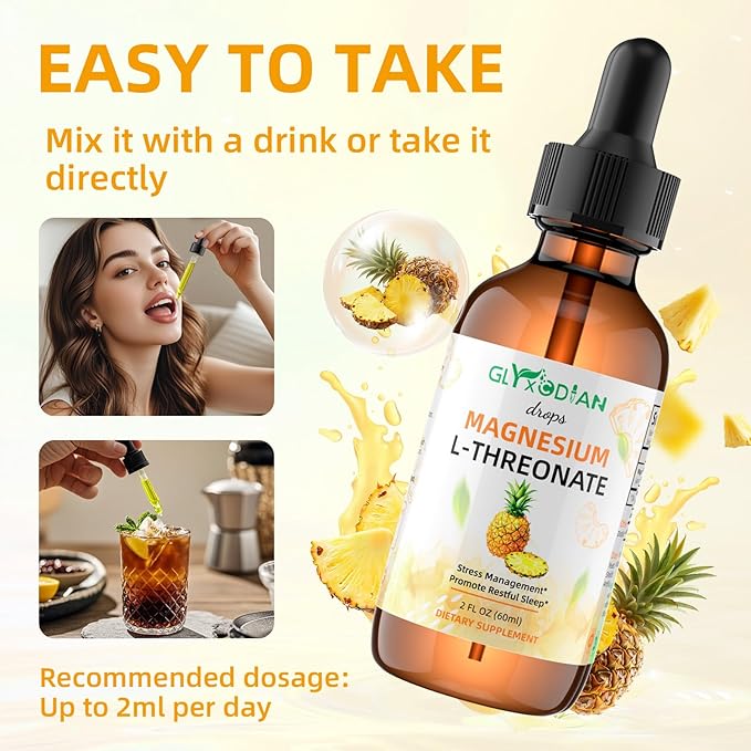 Magnesium L-Threonate Liquid Drops- Magnesium Glycinate Liquid, Support Mood Balance, Muscle, Energy, Sleep, Calm & Nerve, High Absorption, 2 FLOZ, Non-GMO, Suger-Free, Pineapple Flavor