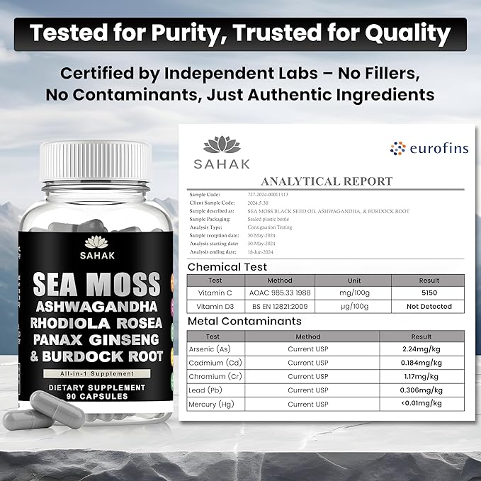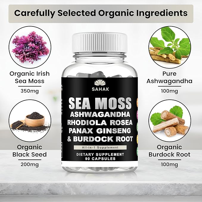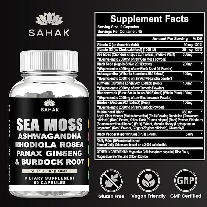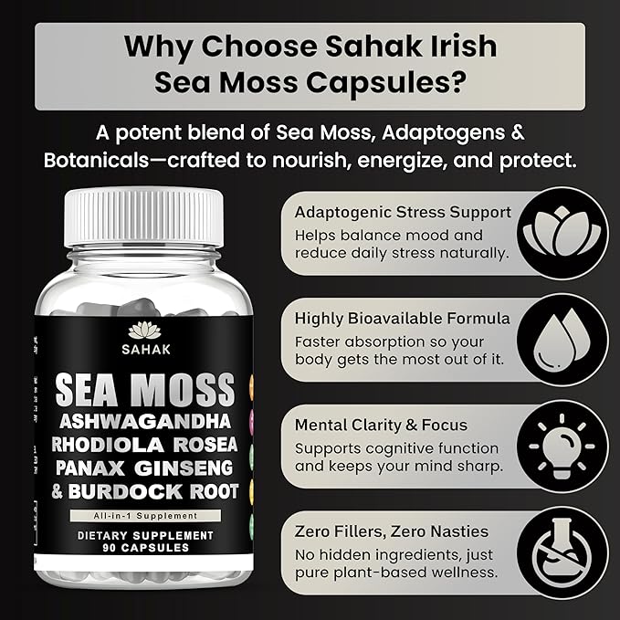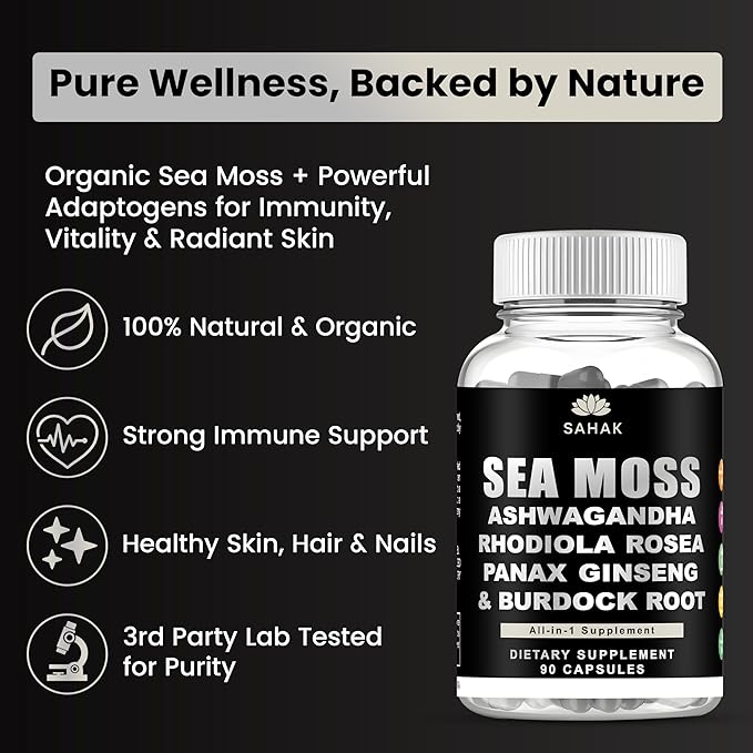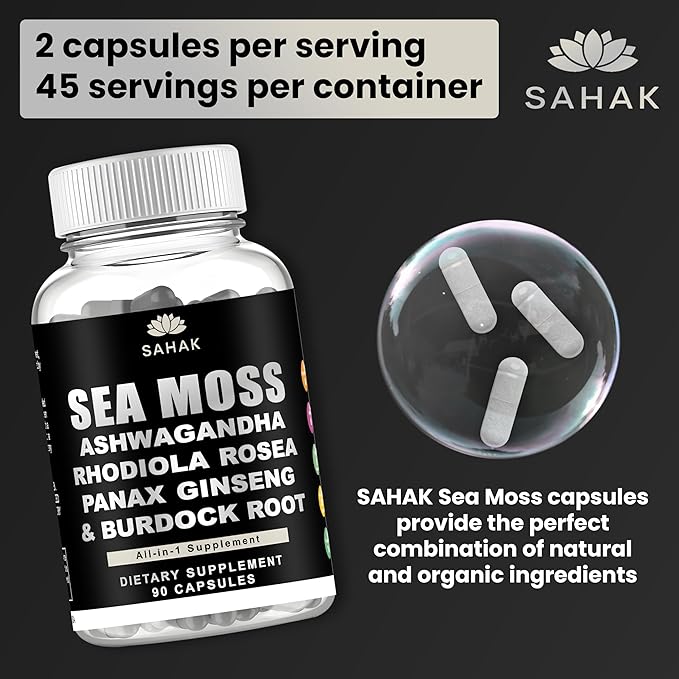 - 100% Authentic & Lab Tested: Sahak Irish Sea Moss Capsules Premium quality, non-chemical extraction. Free from fillers, additives, and hidden ingredients, 90 capsules, providing a 45-day supply. Your well-being is our priority. For Purity and safety, our Irish Sea Moss Capsules 3rd third-party tested and certified. If you have any questions about your purchase, don't hesitate to contact us; we will make it right.