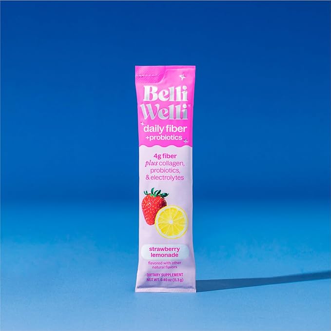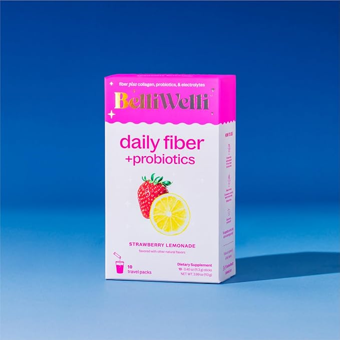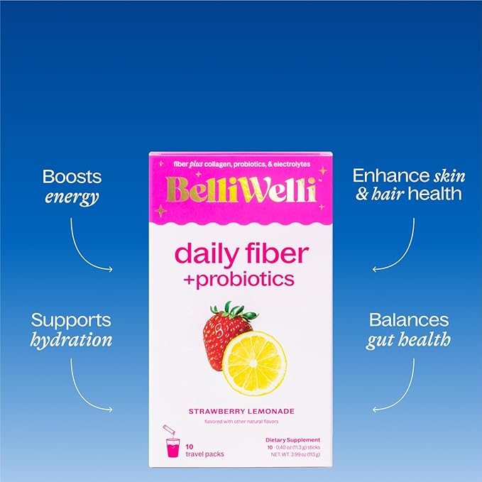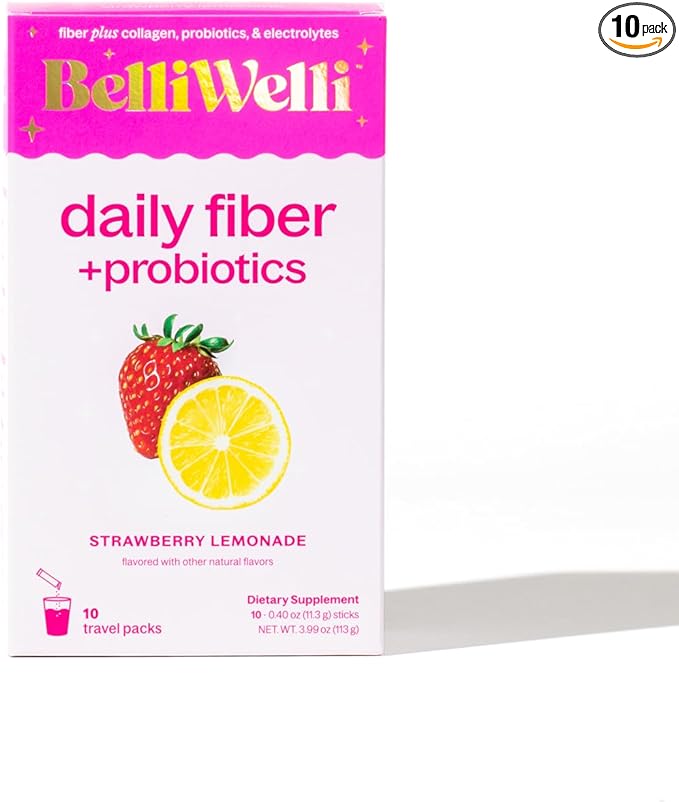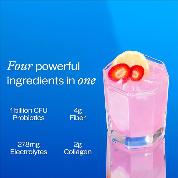 Daily Fiber Supplement Packets with Collagen, Probiotics & Electrolytes | Single Serve Packets for Gut Health, Digestion & Debloating | Strawberry Lemonade | 10 Count