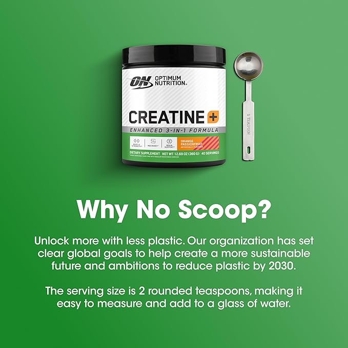 Optimum Nutrition Creatine Monohydrate Plus Powder, Orange Passionfruit Flavored Creatine Performance Blend With Electrolytes for Hydration, Added Vitamins, 40 Servings, 360 Grams (Packaging May Vary)