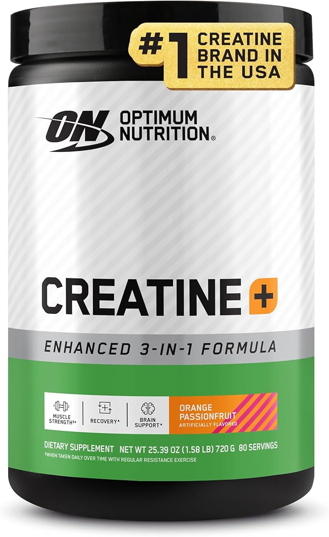 Optimum Nutrition Creatine Monohydrate Plus Powder, Orange Passionfruit Flavored Creatine Performance Blend With Electrolytes for Hydration, Added Vitamins, 80 Servings, 720 Grams (Packaging May Vary)
