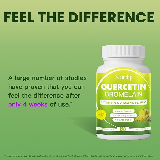 - Immune Support Supplement: Our quercetin complex capsules are made with natural plant-derived quercetin and bromelain. Bromelain helps improve the absorption of quercetin, and use both together to help support your overall health