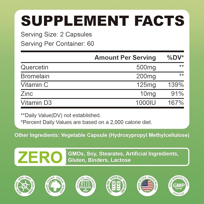 - Primary Supplement Type : Quercetin, Vitamin C, Vitamin D3, Zinc