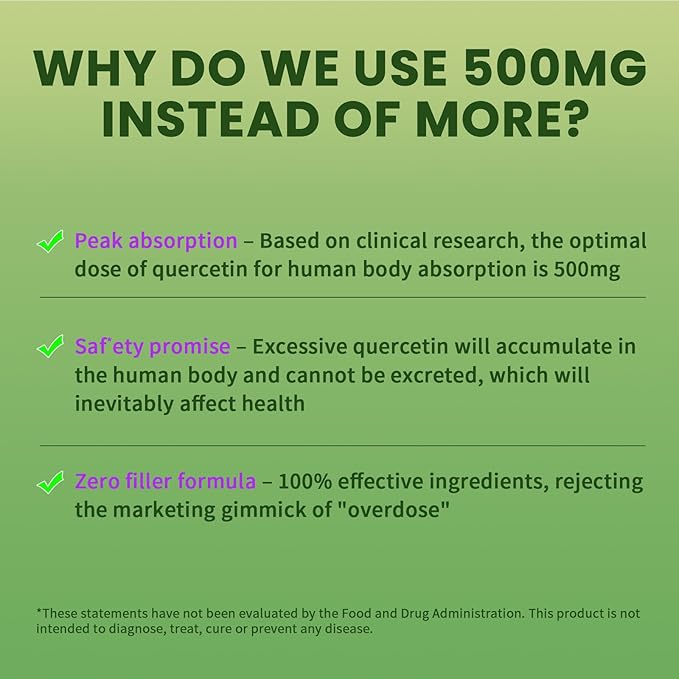 - Inclusive Formula: Our quercetin 500mg capsules are gluten-free, non-GMO, vegetarian to meet a variety of dietary preferences. Whether you are a vegetarian or a consumer who pursues pure, you can enjoy it with peace of mind