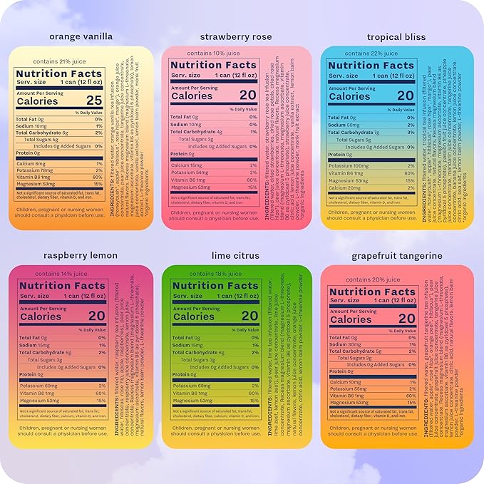 - TRY EVERY FLAVOR: The 12-pack sampler features 2 cans of all of our fan favorites: Strawberry Rose, Orange Vanilla, Raspberry Lemon, Lime Citrus, Tropical Bliss, and Grapefruit Tangerine. Each flavor is brewed with real ingredients like dried strawberries and raspberries.