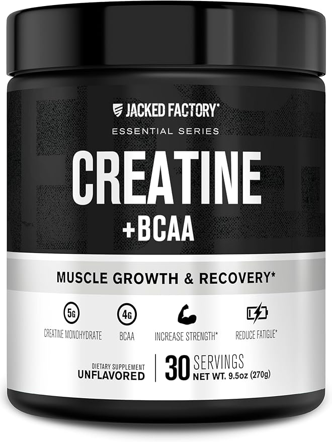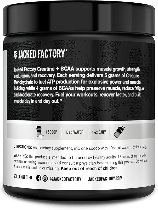 Jacked Factory Creatine + BCAAs - Creatine Monohydrate + BCAA Powder for Increased Post-Workout Recovery, Performance, Lean Muscle Growth, & Reduced Fatigue - 30 Servings, Unflavored