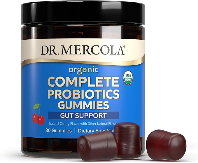Dr. Mercola Complete Probiotics Gummies, 30 Servings (30 Gummies), 5 Billion CFU per Gummy, Dietary Supplement, Digestive Support, Non-GMO, Certified USDA Organic