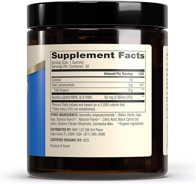- Each cherry-flavored gummy contains 5 Billion CFUs of Bacillus subtilis, with 0 g of sugar, to help your body break down food and absorb nutrients*