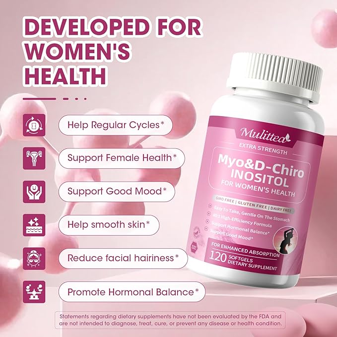 - Support Ovarian for Menstruation & Eggs: MULITTEA Myo-Inositol & D-Chiro Inositol Supplement for Women helps balance hormones and supports ovarian health to promote regular menstrual cycles.The supplemented omega-3 contributes to an optimal egg environment and enhances egg quality
