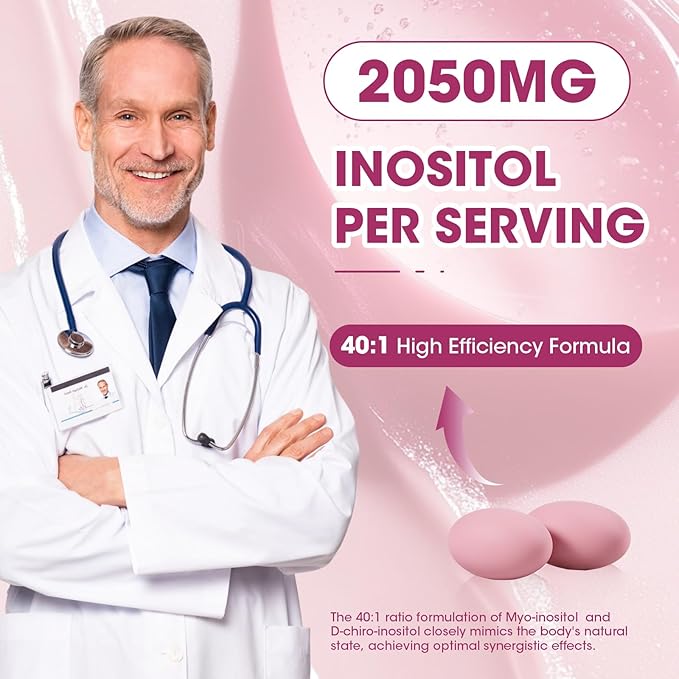 - 40:1 Optimal Ratio:The combination of 2000 mg of Myo-inositol and 50 mg of D-chiro-inositol in a 40:1 ratio closely mimics the natural inositol balance in the human body, ensuring optimal absorption and maximum efficacy