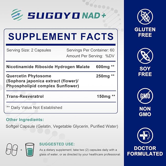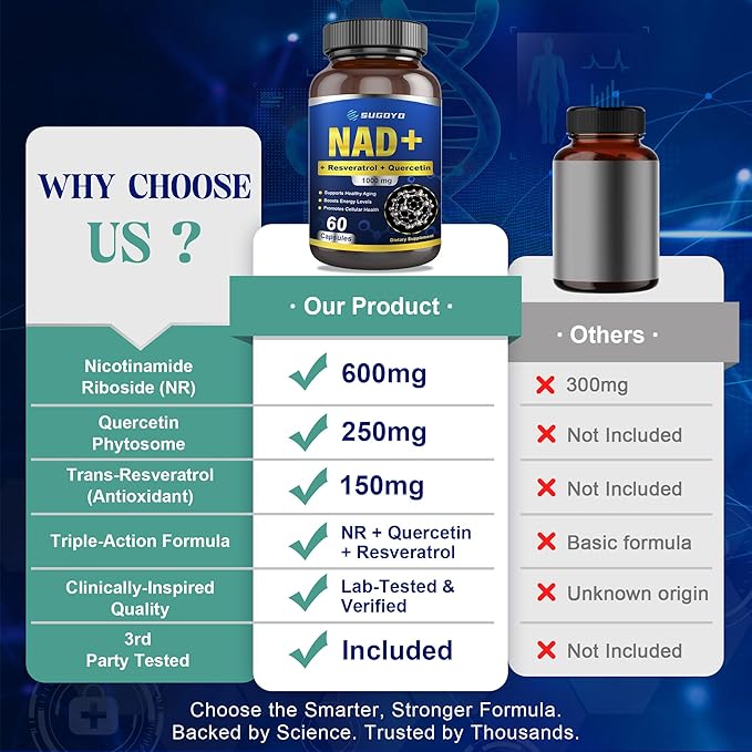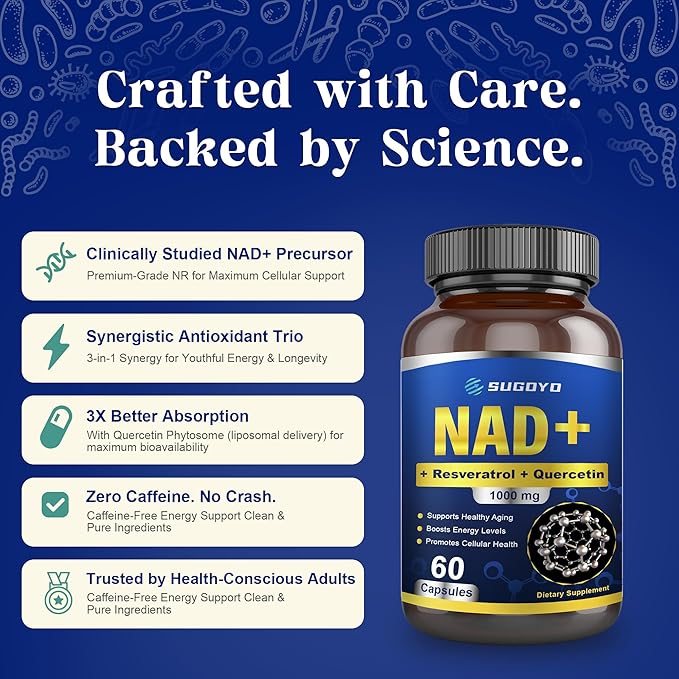 NAD+ Supplement 1000mg Liposomal Nicotinamide Riboside Enhanced with Resveratrol & Quercetin, Anti-Aging & Energy Boost, NMN Alternative, NAD Supplement for Women & Men (60 Count (Pack of 1))