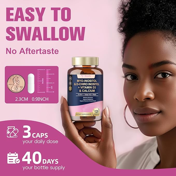 - Easy to Take, Gentle on the Body: Each bottle provides a 40-day supply with just 3 easy-to-swallow capsules per day—a convenient and mess-free alternative to inositol powders. Encapsulated in vegetarian-friendly capsules with no aftertaste, this formula fits effortlessly into your daily wellness routine.