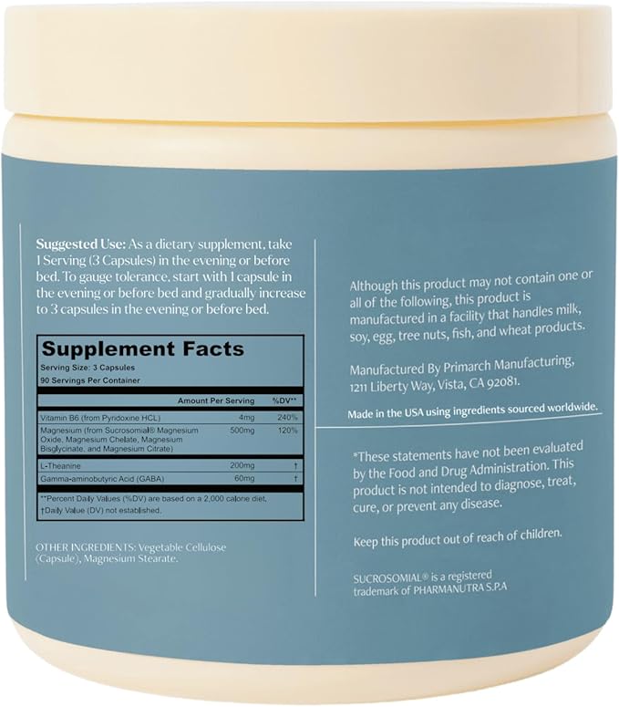 - Primary Supplement Type : GABA, L-Theanine & B6, Magnesium Bisglycinate, Magnesium Chelate, Magnesium Citrate, Magnesium Sucrosomial Oxide GABA, L-Theanine & B6, Magnesium Bisglycinate, Magnesium Chelate, Magnesium Citrate, Magnesium Sucrosomial Oxide