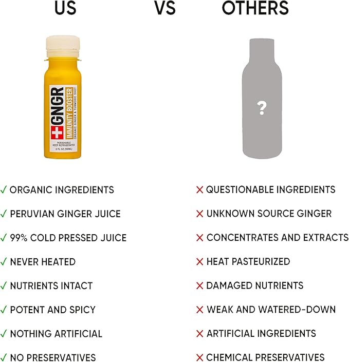 - Cold-Pressed, Clean Formula – Made with 100% USDA Organic ingredients and free from artificial additives, preservatives, or sweeteners, the GNGR Gut Health Booster delivers clean, effective gut and immune support in every convenient shot.