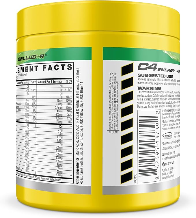 Cellucor C4 Energy + Aminos Powder | Jolly Rancher Green Apple | 5g BCAAs & EAAs for Muscle Recovery, 3 Electrolytes for Hydration, 100mg Natural Caffeine | Pre Workout | Zero Sugar, 30 Servings