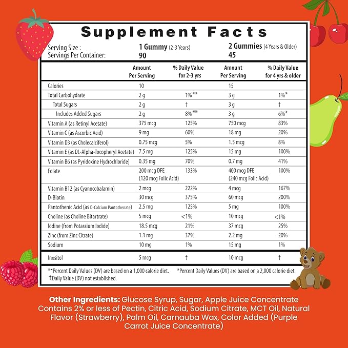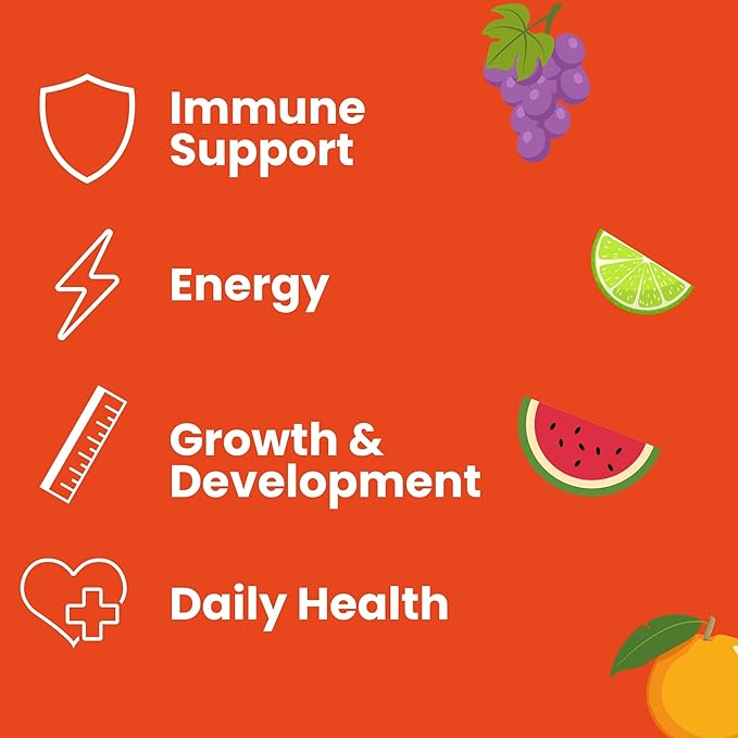 - ESSENTIAL VITAMINS & MINERALS: Each gummy is loaded with a powerful blend of Vitamin A, B6, B12, C, D3, E, Folate, Biotin, Iodine, and Zinc to support energy, brain development, bone health, and focus during crucial growing years.