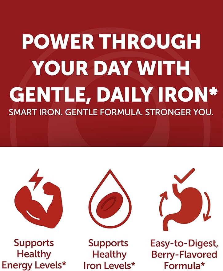 - Gentle Iron for Sensitive Stomachs – Features a well-absorbed, non-constipating form of iron that’s easier to digest than traditional iron pills or capsules. Great for those with low iron sensitivity.