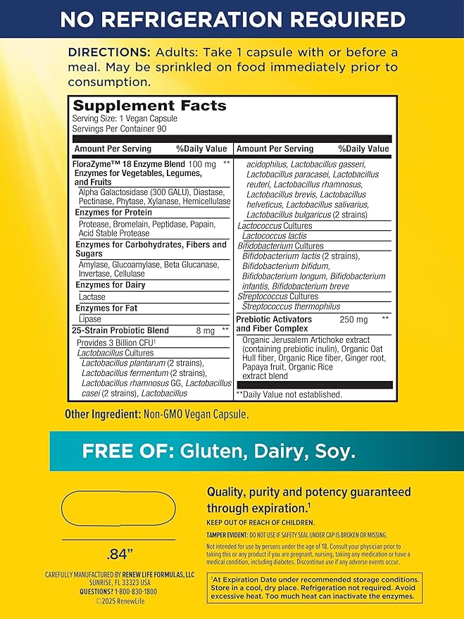 - 25 Diverse Probiotic Strains: Includes a 25-strain probiotic blend for broad-spectrum digestive and gut health support*