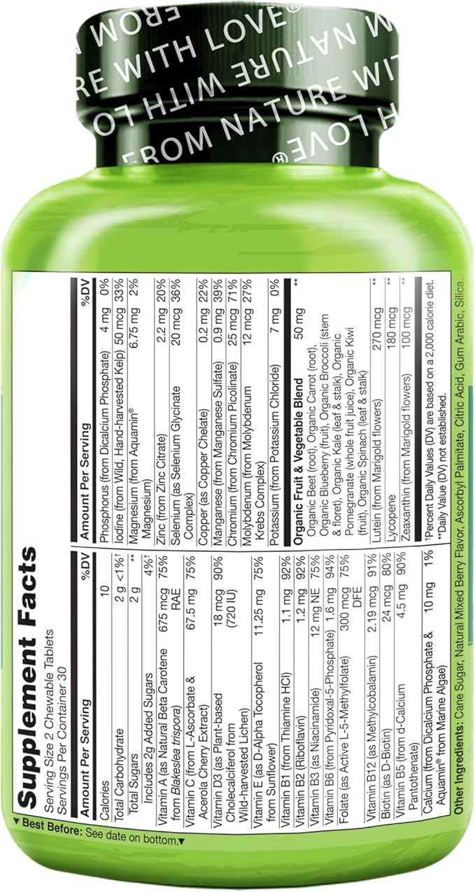 - NEW IMPROVED TASTE: The best children’s multivitamin is the one your kids will actually take! Our new and improved children’s chewable multi has a natural mixed berry flavor that’s easy to love, so kids will actually look forward to taking their vitamins.