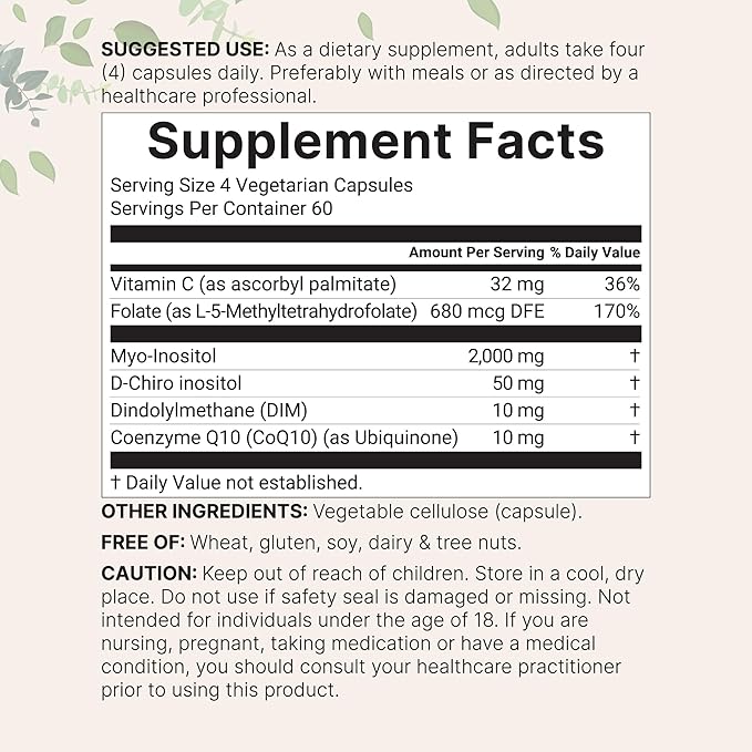 Myo-Inositol & D-Chiro Inositol 2,050mg | 240 Veggie Capsules + Vitamin C, Folate, DIM, & CoQ10 | Inositol Supplement for Women | 40:1 Ratio | Hormonal Balance & Ovarian Support | Filler Free