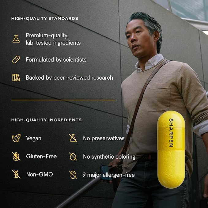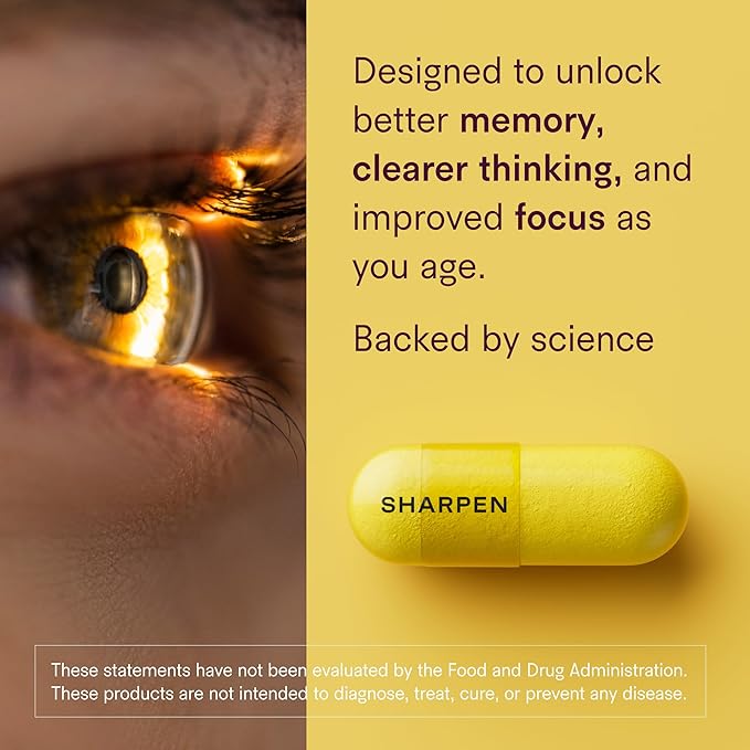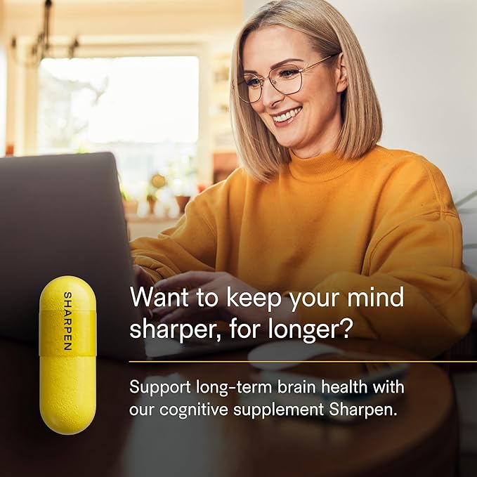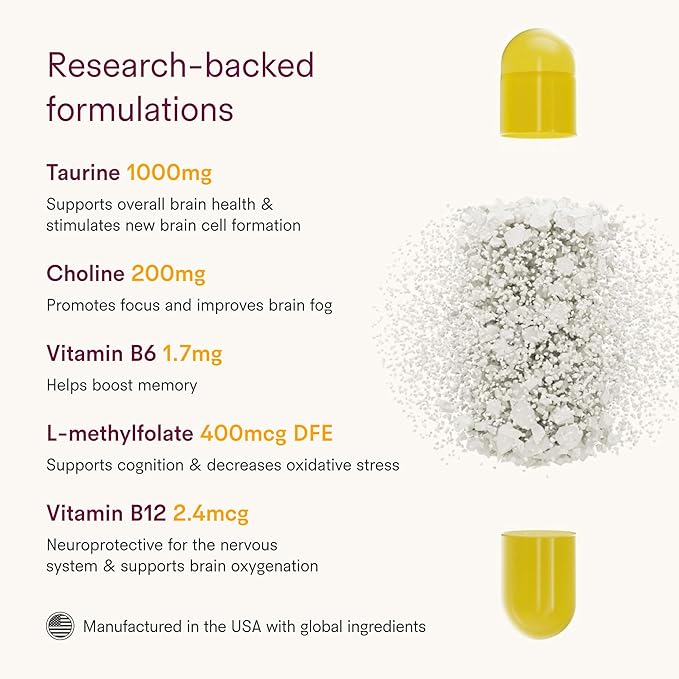 Sharpen – Brain Supplement for Focus, Memory & Long-Term Cognitive Support | 1000mg Taurine, Choline & B-Complex | Vegan, Non-GMO, Nootropic for Cellular Brain Health