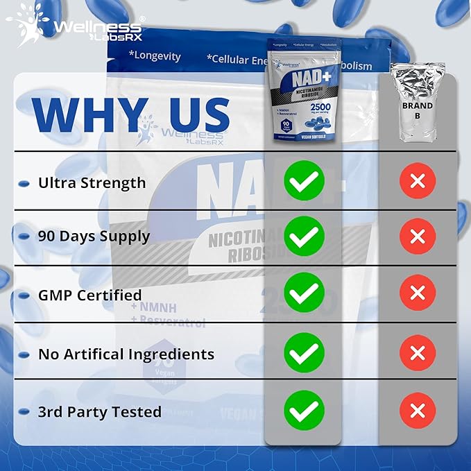 - ππππππππ ππππππππ ππππππ: Unlock the potential of your cells with Ultra-Strength NAD + Softgels with NMNH and Resveratrol. Premium formula with a powerful 2500mg dose of NAD+ per serving, providing essential support for your cellular health and overall energy. With 90 nad + supplement softgels per pouch, youβll enjoy a 45-day supply of this potent blend