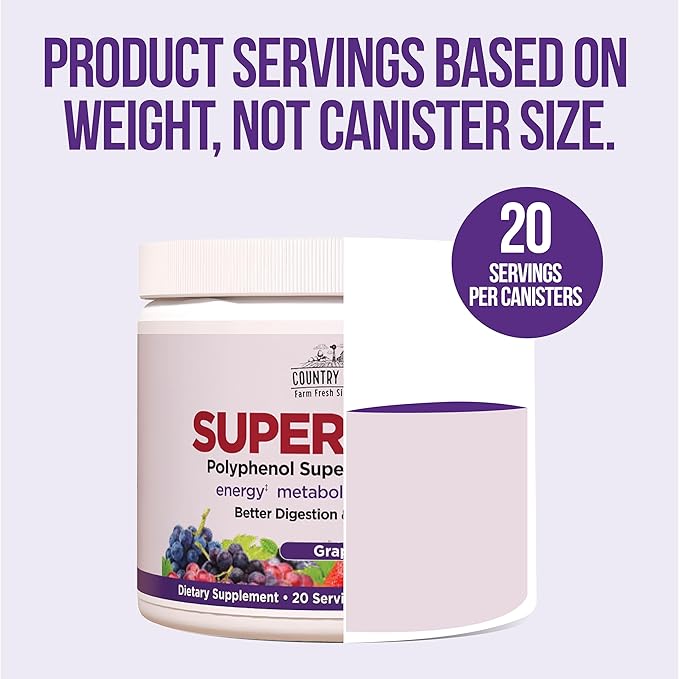 Country Farms Super Reds, Energizing Polyphenol Superfood, 40 Super Fruits and Berries, Powerful Antioxidants and Polyphenols, Supports Energy and Immunity, 20 Servings, Grape Flavor