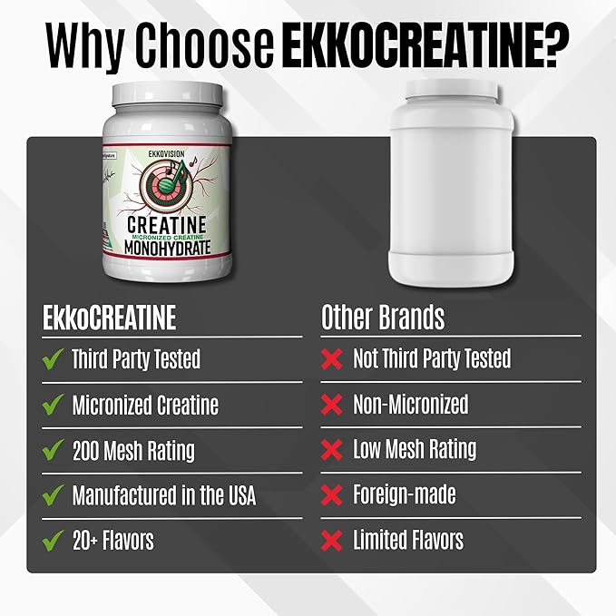 - PURE MICRONIZED CREATINE MONOHYDRATE FOR EASY MIXING: Experience Ekkovision Creatine Monohydrate with a fine, micronized texture that dissolves smoothly in water, juice, or shakes. Enjoy a versatile formula that seamlessly fits into your daily routine, whether for workouts or overall energy and fitness support. Each container delivers 100 servings, making it a practical choice for those committed to their fitness goals.