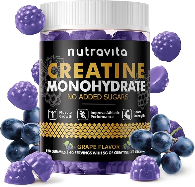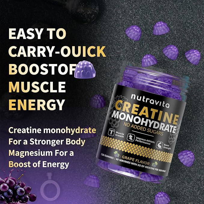 Creatine Monohydrate Gummies for Men & Women-5g of Creatine Monohydrate per Serving - Sugar Free,Vegan, Grapes Flavor, 120 Count