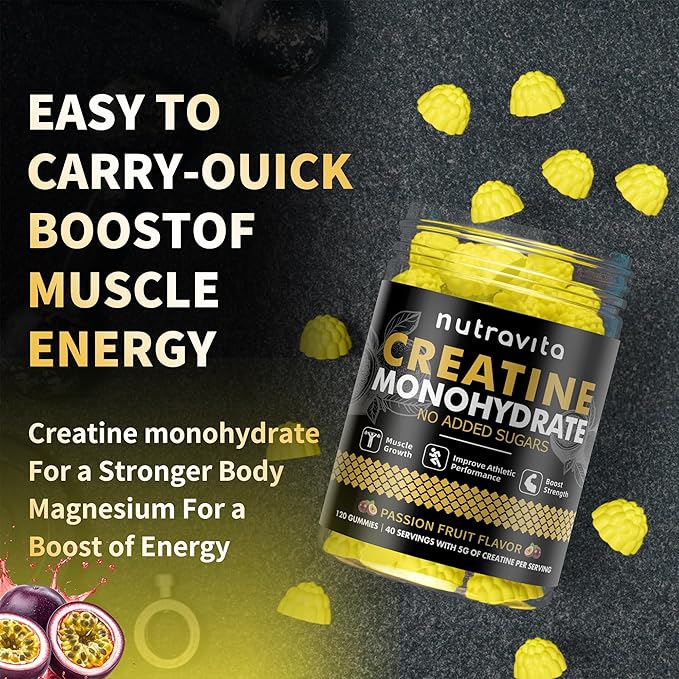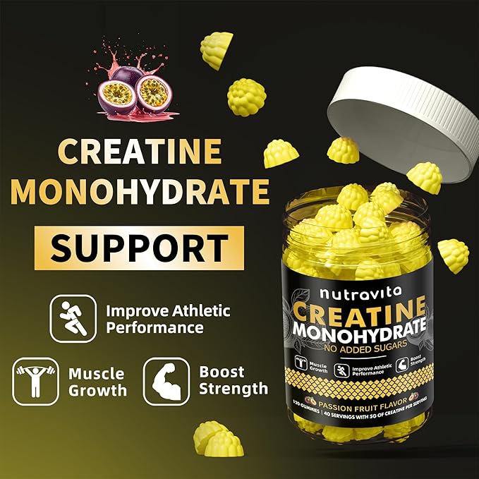 Creatine Monohydrate Gummies for Men & Women-5g of Creatine Monohydrate per Serving - Sugar Free,Vegan, Passion Fruit Flavor, 120 Count